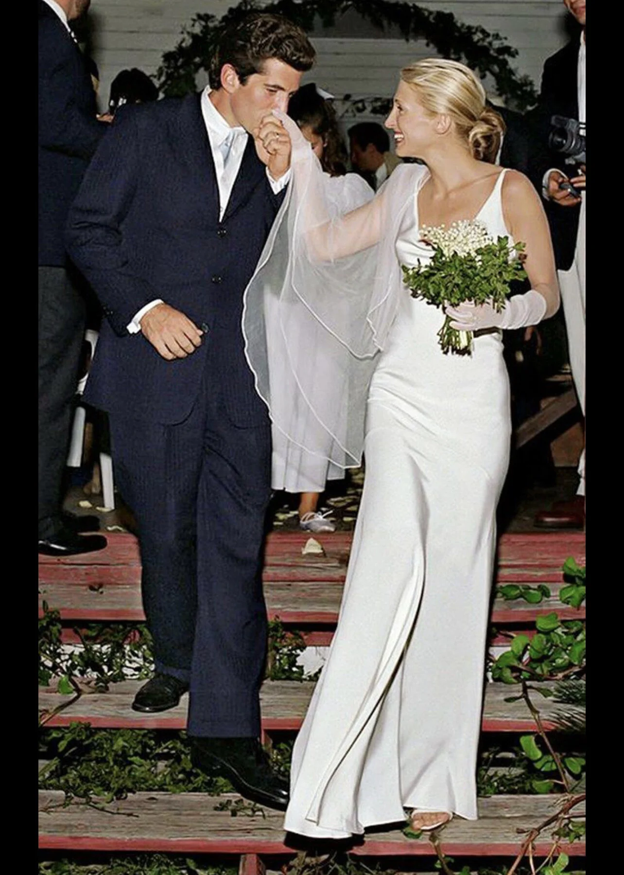 These dresses gained popularity when Carolyn Bessette Kennedy wore a Narciso Rodriguez-designed satin sheath for her wedding to John F. Married Carolyn Bessette in Secret 25 Years Ago.
